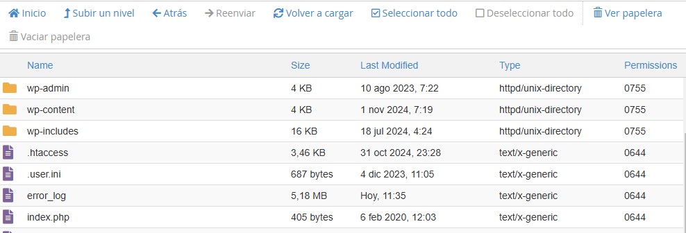 Es crucial manejar los permisos con cuidado, ya que configuraciones demasiado permisivas pueden comprometer la seguridad del sitio. Este ajuste suele ser rápido y, en la mayoría de los casos, soluciona el problema sin complicaciones. Si ajustas los permisos y el error persiste, es momento de seguir adelante y revisar el archivo .htaccess.