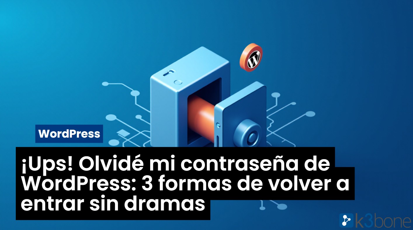 En k3bone entendemos que olvidar la contraseña de WordPress es un problema más común de lo que parece. ¡A todos nos ha pasado alguna vez! Pero no te preocupes, ¡no entres en pánico! Existen diversas formas de recuperar el acceso a tu sitio web sin perder datos valiosos. En este artículo, te guiaremos a través de 3 soluciones efectivas, desde la más sencilla hasta la más técnica, para que puedas volver a gestionar tu WordPress sin contratiempos.